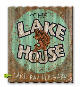 THE LAKE HOUSE DISTRESSED CORRUGATED METAL PERSONALIZED SIGN