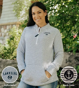 Lakegirl French Terry Stripe 1/4 Zip in Navy